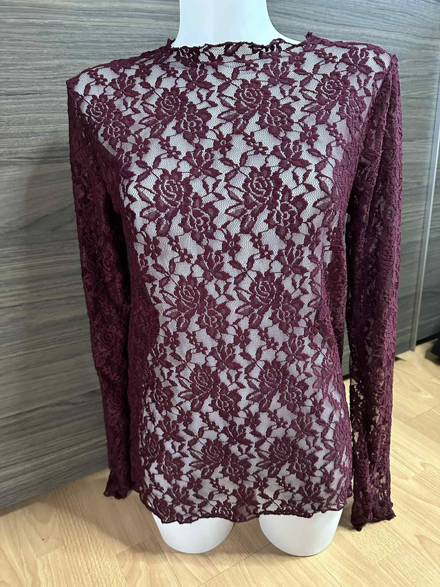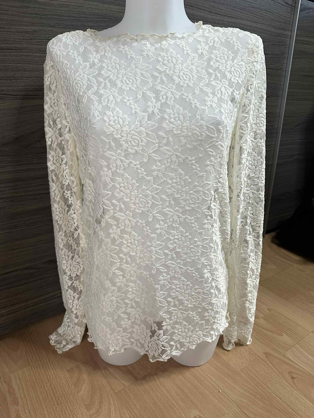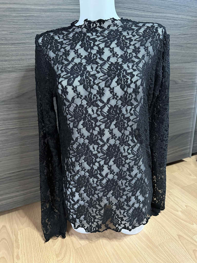 - Blouse en dentelle extensible 100% polyester. Ne gratte pas